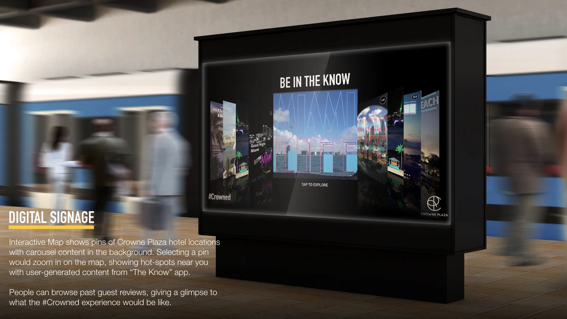 SOLUTION: THE CROWNE EXPERIENCE. Crowne Plaza will rebrand itself as a hotel with character and technology that doesn't take the place of human interaction, but enhances it. It will offer an experience that is based on the power of human connection. We believe that great things come through collaboration and networks; that driven and creative people need to be inspired by their surroundings, technology and the people around them—a place where people can work, meet, learn, collaborate and play.
